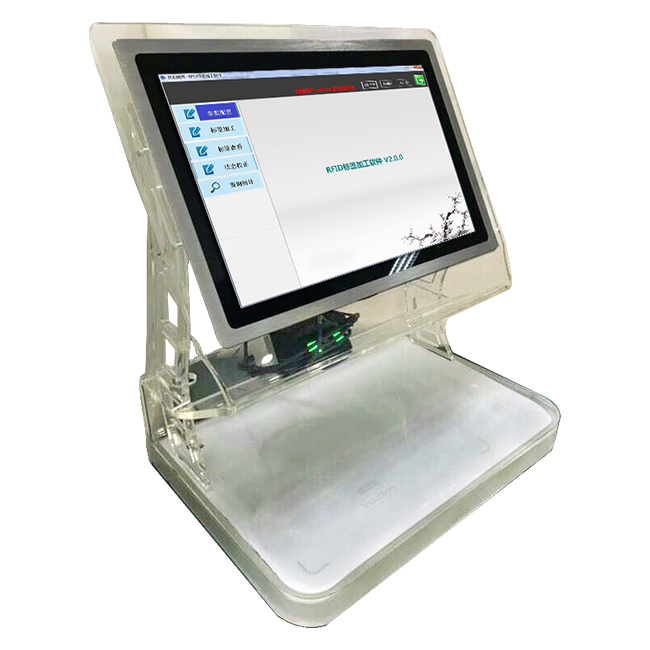 產(chǎn)品簡介: 館員工作站一體機把PC和RFID讀寫板進行結合,采用一體化設計,簡化了加工步驟,在對圖書條碼進行紅外掃描的同時進行標簽讀寫。內(nèi)置的模塊有條形碼閱讀器,RFID讀寫器,IC卡讀寫器,標簽轉換軟件??蓪FID標簽非接觸式地進行閱讀,有讀取、寫入、改寫RFID標簽的功能。條形碼閱讀器和RFID讀寫板的對應放置設計符合圖書標簽轉換操作環(huán)境,觸摸顯示一體屏能更加方便快捷的操作標簽轉換軟件。